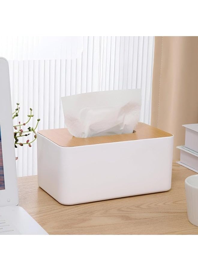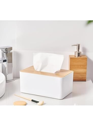 generic - حامل مناديل، غطاء حامل علبة توزيع مناديل الوجه، صندوق مناديل بلاستيكي ابيض مع غطاء وحامل، حاوية ورقية مستطيلة لتجفيف الملابس في المكتب والحمام (23 × 13 × 10 سم)