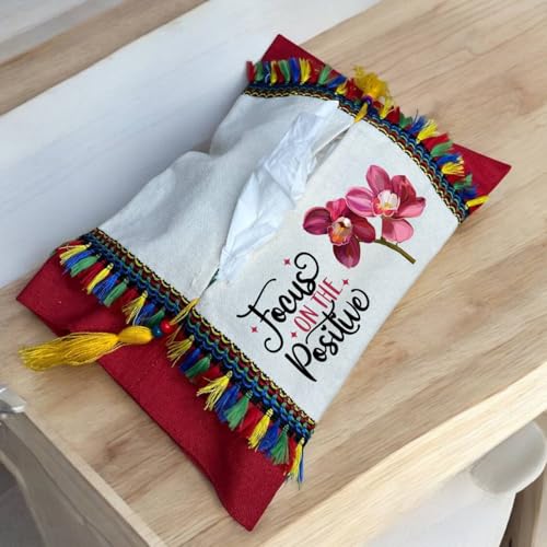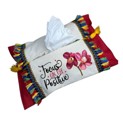 Generic - حامل مناديل - قماش قطني ثقيل - 22 سم × 34 سم - تصميم تحفيزي - التركيز على الإيجابية - نحن نطبع هديتك