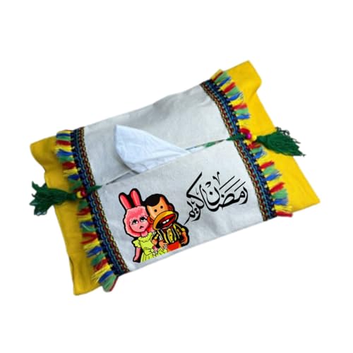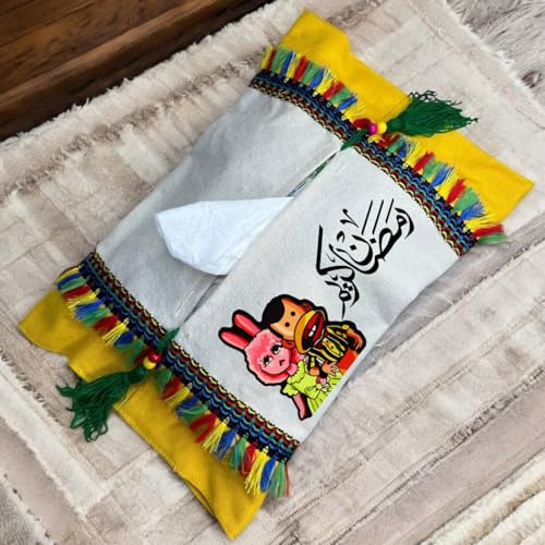 Generic - حامل مناديل - قماش قطني ثقيل - 22 سم × 34 سم - اصفر - تصميم رمضان كريم- بوجي وطمطم- نحن نطبع هديتك