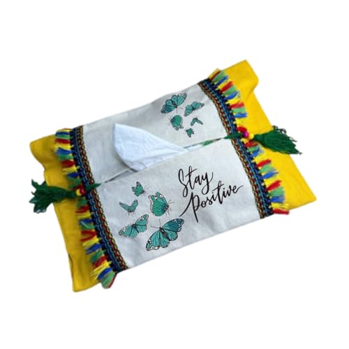 Generic - حامل مناديل - قماش قطني ثقيل - اصفر - 22 سم × 34 سم - تصميم تحفيزي - ابق إيجابيًا - نحن نطبع هديتك