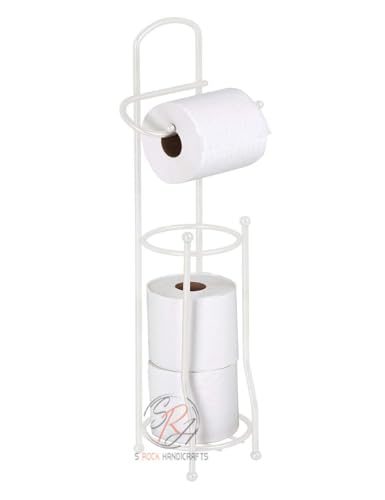 S Rock Handicrafts - حامل مناديل | حامل ورق تواليت قائم على الارض | حامل مناديل | حامل مناديل تواليت بلمسة من الفخامة لمنزلك | حل تخزين الحمام | (3 لفات ورق مجانية) (ابيض)