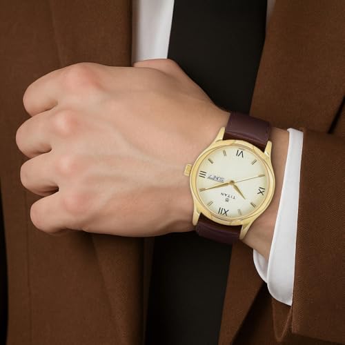 Titan - ساعة كاجوال للرجال 1580Yl05 من تيتان- لون بني، انالوج بعقارب