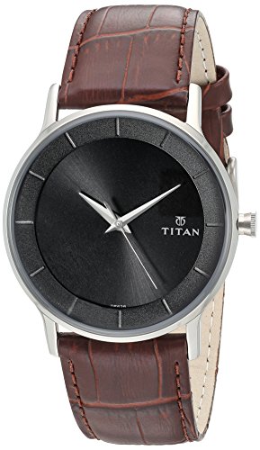 Titan - تايتن ساعة انالوج كلاسيكية بسوار جلدي للرجال 1672SL01، مقاس 47 ملم، بني