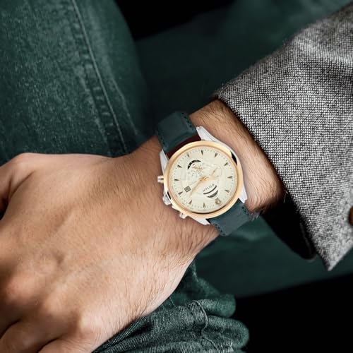 Titan - تايتن ساعة كوارتز متعددة الوظائف بسوار جلدي للرجال 1698WL01، مقاس 49 ملم، بني