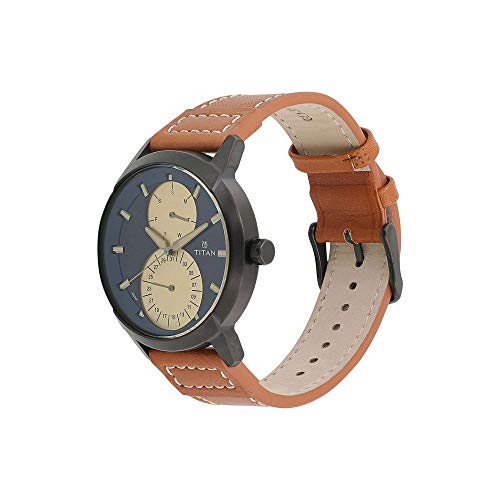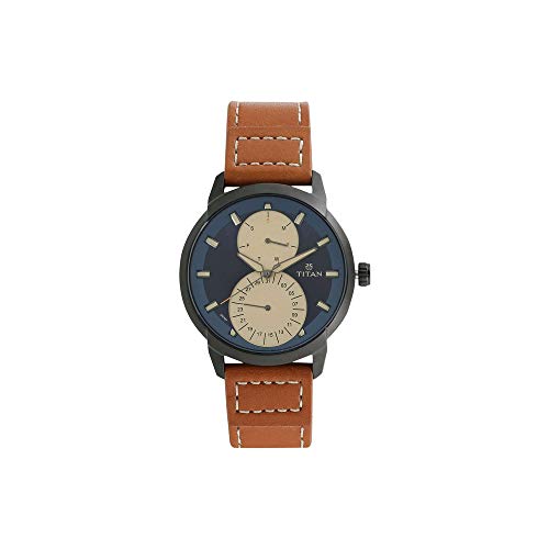 Titan - تايتن ساعة انالوج بعقارب للرجال 1756NL01 (ازرق)، سوار بني