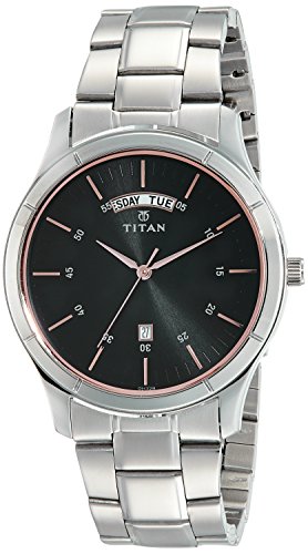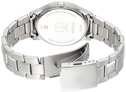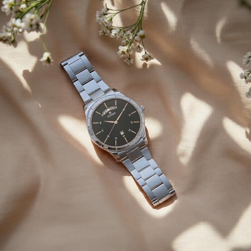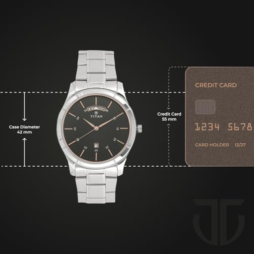 Titan - ساعة عمل أنالوج للرجال من تيتان، بسوار من فولاذ مقاوم للصدأ مع عرض اليوم والتاريخ، مقاس 49.20 ملم، لون فضي، 1767SM02