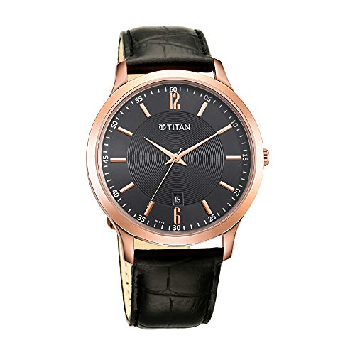 Titan - ساعة للرجال من تايتن بحركة كوارتز أنالوج وسوار جلدي مع عرض التاريخ، مقاس 47.3 ملم، لون أسود، موديل 1825WL03