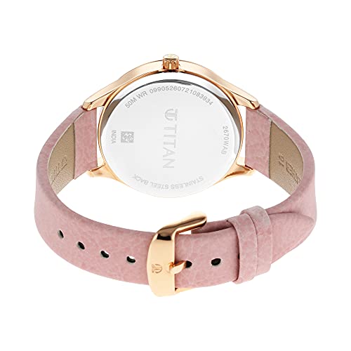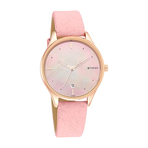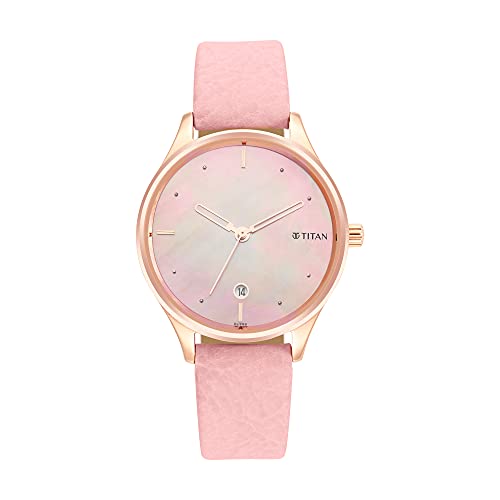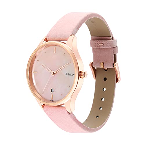 Titan - تايتن ساعة باستيل دريمز بعرق اللؤلؤ بعرض انالوج وسوار جلدي للنساء، طول الهيكل 42 ملم، لون بينك، موديل 2670WL02