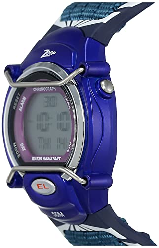 Zoop - ساعة رقمية زوب بسوار نايلون للأطفال موديل 3001PV02 من تيتان، طول الهيكل 50 ملم، لون أزرق