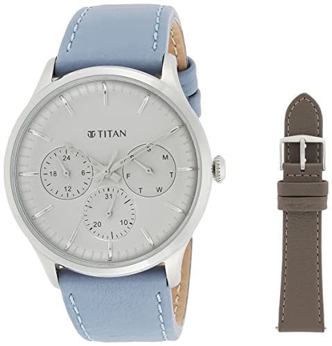 Titan - ساعة يد انالوج بعقارب من تيتان 90125SL03 بسوار جلدي رمادي - مناسب للرجال