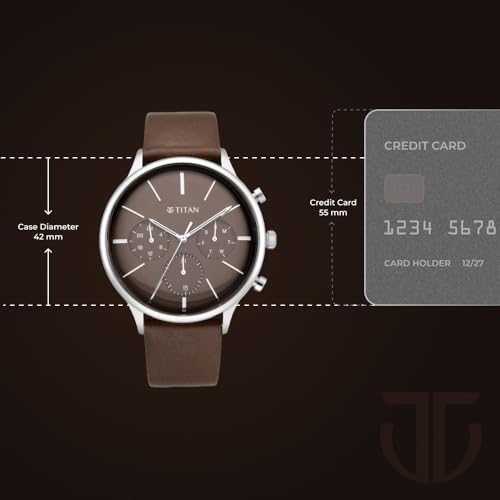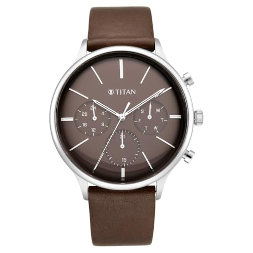 Titan - تايتن ساعة كوارتز متعددة الوظائف بسوار جلدي للرجال 90134SL02، طول الهيكل 48.5 ملم، بني
