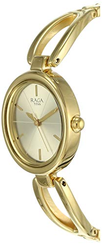 Titan - تايتن ساعة رسمية للنساء انالوج بعقارب معدن - 2579YM01، بمينا فضة، بسوار ذهب