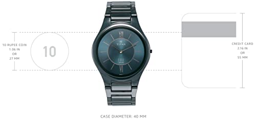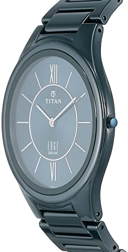 Titan - تايتن ساعة يد انالوج بعقارب بمينا ازرق وسوار من السيراميك للرجال من ايدج