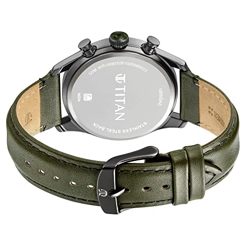 Titan - ساعة انالوج بعقارب وحركة كوارتز وسوار جلدي للرجال من تيتان - 1805QL01, أخضر