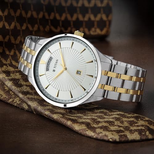 Titan - ساعة ريجاليا أنالوج بعقارب ومينا أبيض للرجال من تايتن، NP90127BM01/NP90127BM01, سوار أبيض