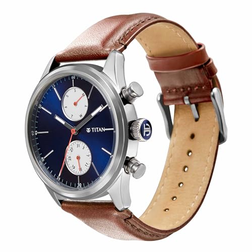 Titan - ساعة يد بحركة كوارتز ونظام عرض أنالوج وسوار جلد بني فاتح للرجال من تيتان - 1805SL06