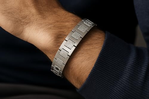 Generic - سوار مغناطيسي رجالي من التيتانيوم – تصميم أنيق مضاد للحساسية مع مغناطيسات علاجية – للرجال الرياضيين والأنيقين – سوار طاق (فضى)