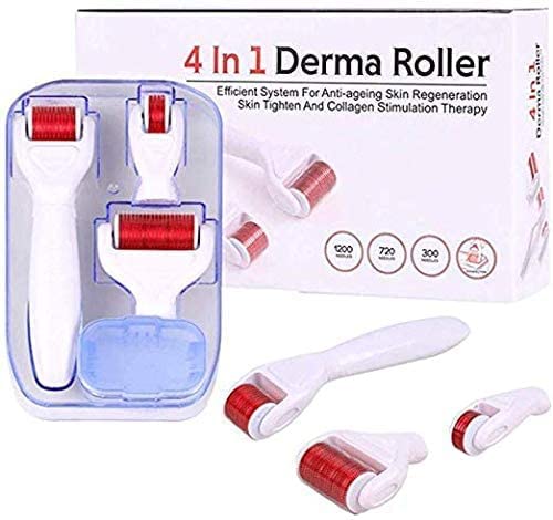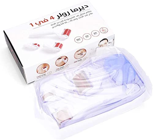 Generic - ديرما رولر 4 في 1 باحجام مختلفة مع محلول تعقيم وابر دقيقة من التيتانيوم 0.5-1.0-1.5 ملم , متعدد الالوان
