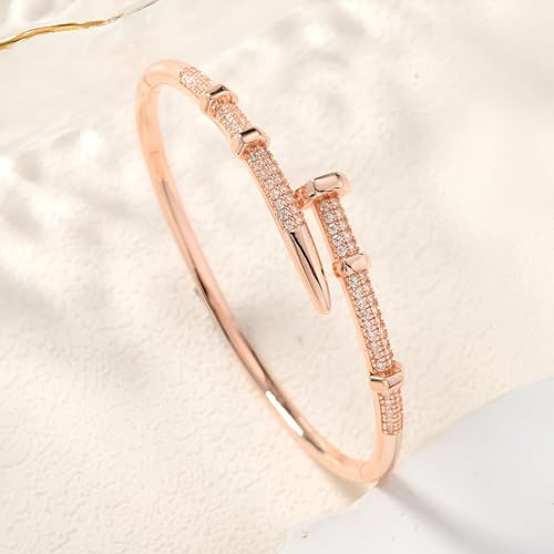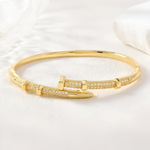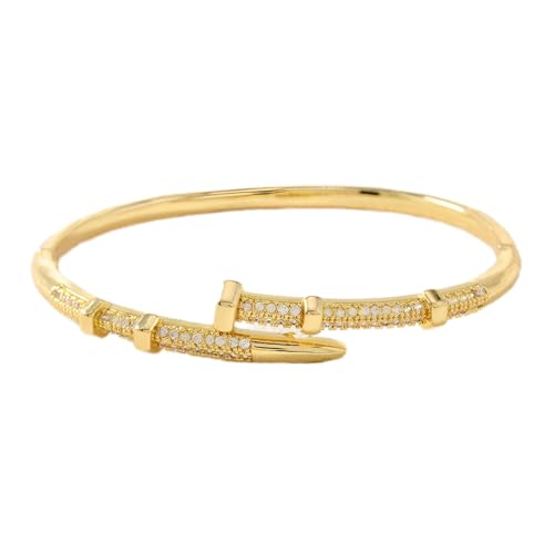 Generic - سوار من ستيل التيتانيوم - سوار حلقي بتصميم مسمار متطور مع طلاء ذهبي وحجر زركونيا مكعب، اختيار مجوهرات انيق ومتين للنساء لافضل مظهر يومي والمناسبات الخاصة