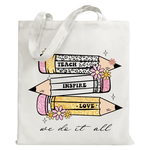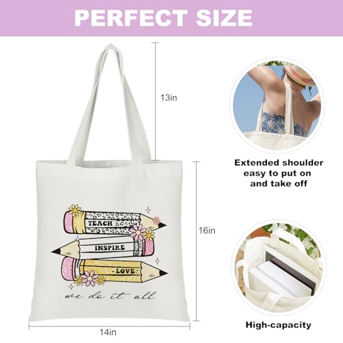 TiTkaiVi - تيتكايفي هدايا تقدير المعلم حقائب كبيرة توت قماشية للسفر والشاطئ حقيبة صيفية قابلة لاعادة الاستخدام للبقالة والتسوق، ابيض
