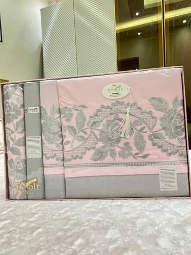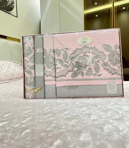 Generic - طقم ملاية قطن Tivoli عالى الجوده مستورد تركي مكون من 4 قطع 1 ملايه مسطح 260 * 240 مع 1 غطاء وخده طويله(180 * 45) مع 2 غطاء وسادة 55 * 75 اللون (رمادي*بينك)