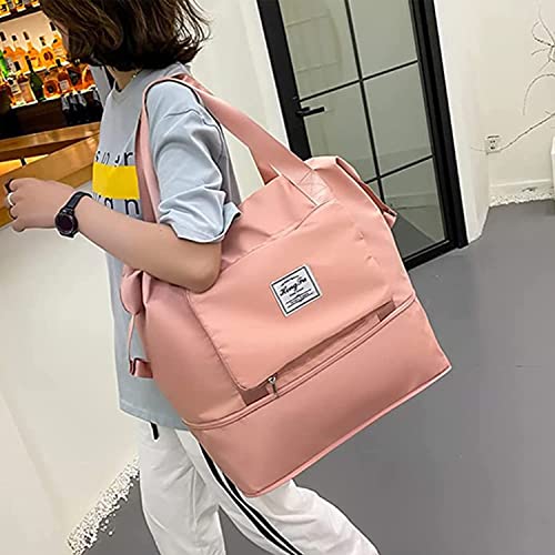 Tiyahi - شنطة سفر حريمي قابلة للطي وكبيرة السعة من تياهي، شنطة سفر خفيفة الوزن ومقاومة للماء بحزام ثابت، شنطة دفل قابلة للطي للسفر، تفصل الامتعة الجافة عن المبللة, أرجواني