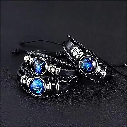 TJDQUOLI - سوار بتصميم علامات زودياك من تي جيه دي كيولي، سوار بتصميم روح الابراج، اساور جلدية متعددة الطبقات قابلة للتعديل مكونة من اثني عشر كوكبة