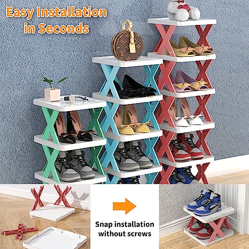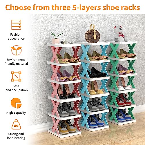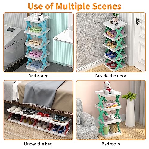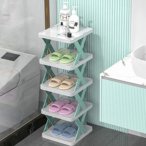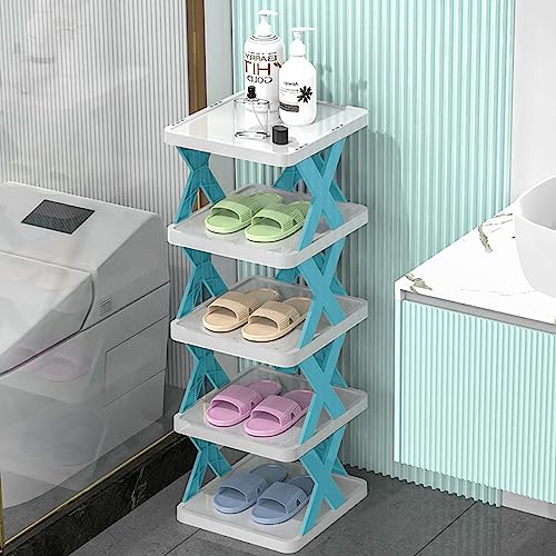 Tkekruh - رف أحذية بتصميم ضيق من 5 طبقات، رف أحذية متعدد الطبقات قابل للتكديس وقابل للتعديل للممر وغرفة النوم من تكيكروه، أزرق