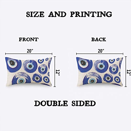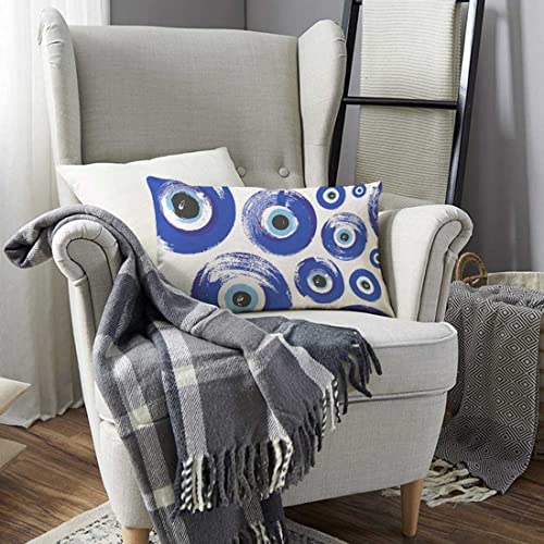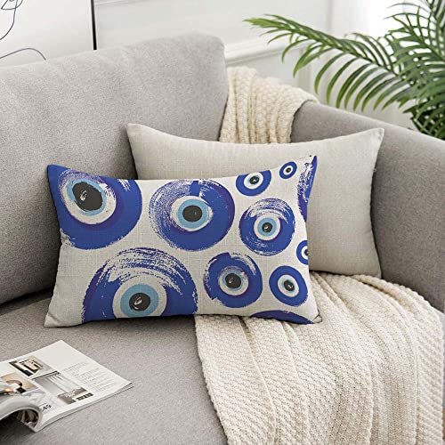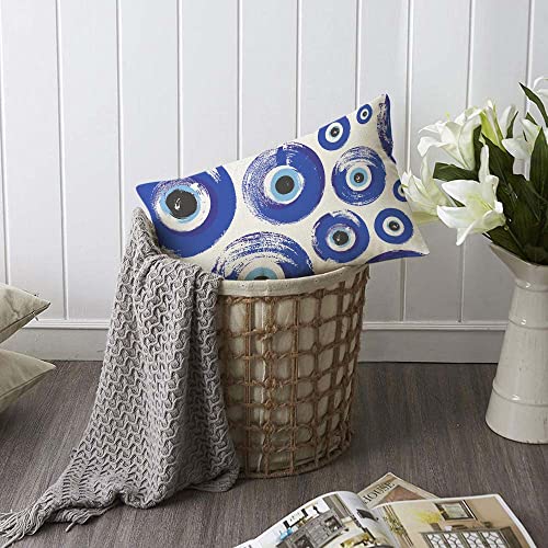 TKS MITLAN - اغطية مخدات دائرية بتصميم تركش اي مقاس 30 × 50 سم بلون ازرق وعين تركش فاطمة يامبل للحماية زخارف تركية، اغطية مخدات زينة من الكتان للكنبة من تي كيه اس ميتان