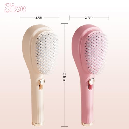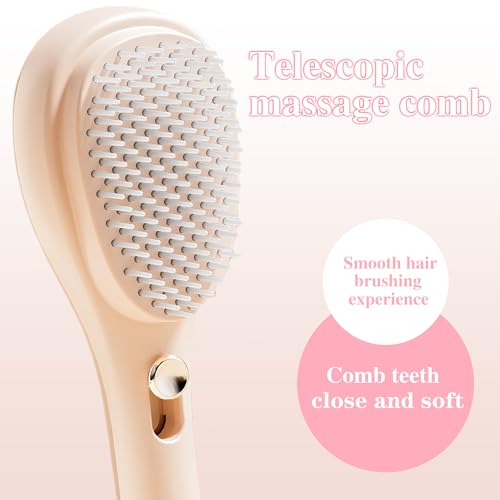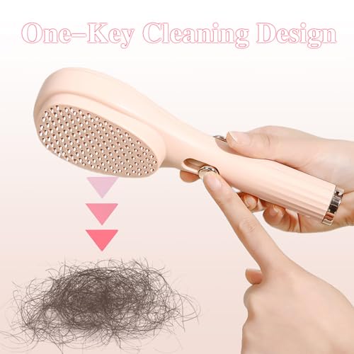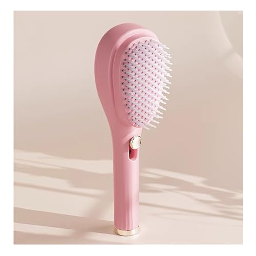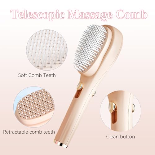 TKXOX - فرشاة تنظيف تلسكوبية ذاتية التنظيف من تي كيه اكس او اكس، مشط تنظيف بنقرة واحدة، مشط تدليك، تنظيف فروة الرأس، امشاط للنساء والرجال، مشط تدليك تلسكوبي محمول (بينك)