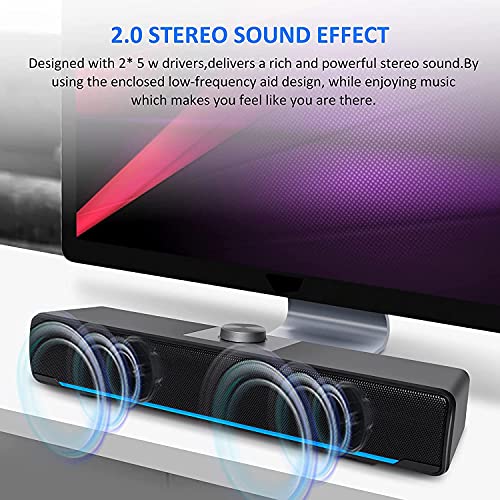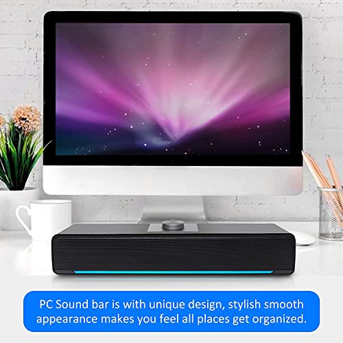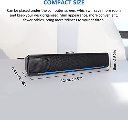 - [وفر مساحة المكتب] يوفر تصميم مكبر الصوت المدمج المنخفض مساحة أكبر تحت شاشة الكمبيوتر. يوفر مساحة المكتب، ويقلل من فوضى الكيبلات ويجعل سطح المكتب الخاص بك أكثر ترتيبًا. مقبض مستوى الصوت في الأعلى يجعل من السهل التحكم في مستوى الصوت.