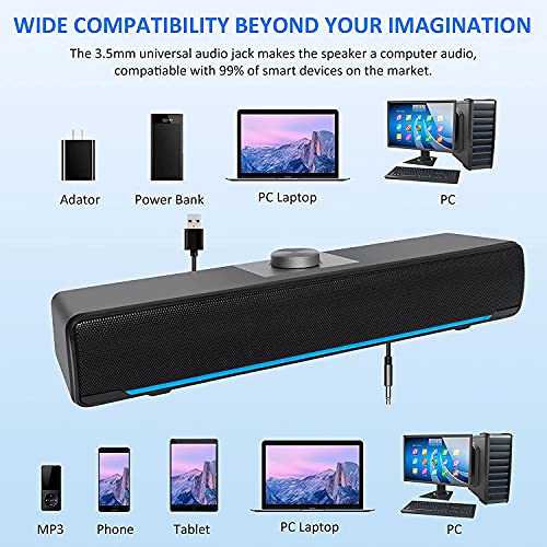 - [متوافق مع أجهزة متعددة] يأتي مكبر صوت الكمبيوتر الخاص بنا مع واجهة صوت 3.5 ملم متوافقة مع أجهزة الكمبيوتر المكتبية وأجهزة الكمبيوتر الشخصية وأجهزة اللاب توب واي ماك وأجهزة ماك والتابلت والهواتف وأجهزة العرض والشاشات ومشغلات الأقراص المضغوطة وام بي 3 وما إلى ذلك. تتيح لك كيبلات الصوت مقاس 51.1 انش التوصيل دون عوائق في المكتب أو المنزل.