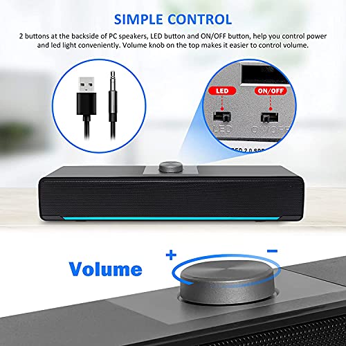 - [التوصيل والتشغيل] يتم توصيل مكبرات الصوت الخاصة بنا مباشرة بمنفذ USB (5 فولت × 1 امبير) ومنفذ صوت 3.5 ملم للكمبيوتر. لا حاجة إلى برامج تشغيل أو برامج ويتم تشغيلها بواسطة كيبل USB، نحن نتجنب مشكلة الشحن ونقدم أفضل تجربة لليد الخضراء.