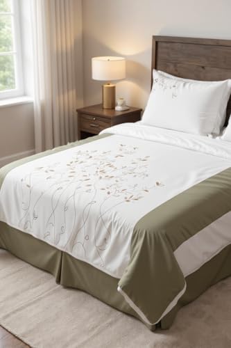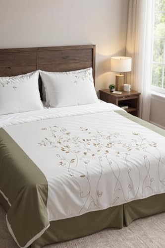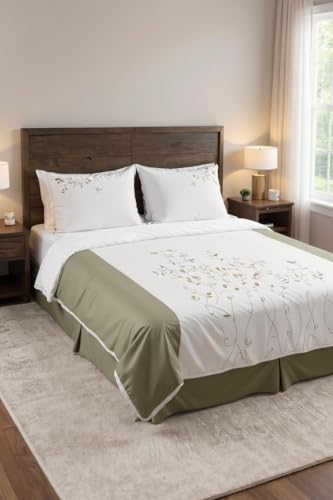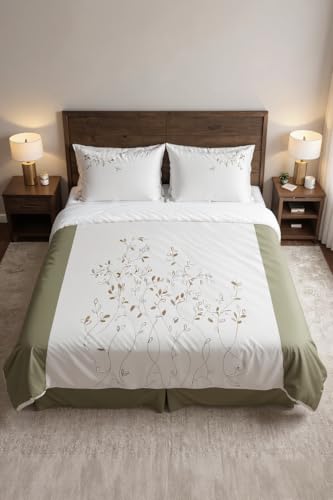 TM HOME - طقم غطاء لحاف استيلا مطرز مكون من 3 قطع من تي ام هوم، مقاس 220×260 سم - ابيض واخضر