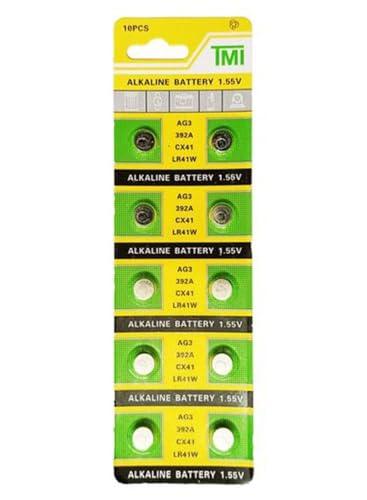 generic - بطاريات قلوية زر تي ام اي، 10 قطع من بطاريات الخلايا القلوية 1.55 فولت | LR41W، AG3 - بطاريات غير قابلة لاعادة الشحن للساعات والالعاب واجهزة التحكم عن بعد، حجم بطارية مدمج، بطارية متينة