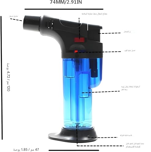 - تحكم بسهولة في شدة اللهب القابلة للتعديل بناءً على احتياجاتك الفردية، مما يسمح بالتطبيقات الدقيقة. سواء كنت بحاجة إلى لهب لطيف للمهام الحساسة أو لهب أكثر قوة للمواد الأكثر صلابة، كل ذلك في يديك.
