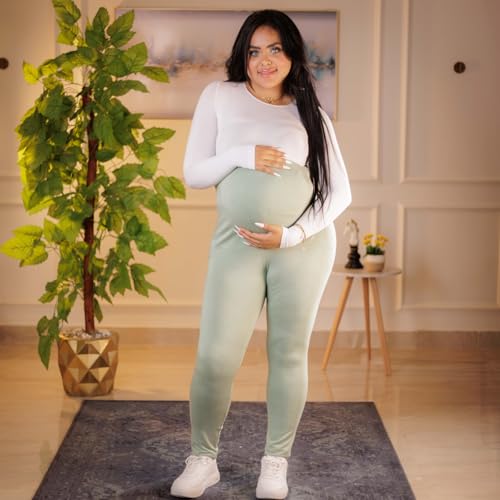 TOBAY - بنطلون قطن مرن للحوامل من توباي - TO-101-اخضر مينت-L