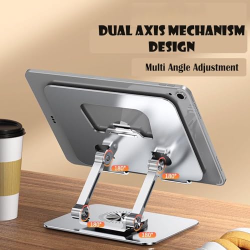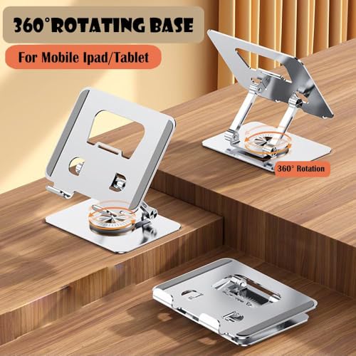 - 【قابل للدوران 360 درجة】تم تصميم الجزء السفلي من حامل التابلت بقرص دوار، والذي يمكن تدويره بسهولة 360 درجة، بغض النظر عن الزاوية التي تتواجد فيها، يمكنك الدوران والتعديل على الوضع الأنسب لك.