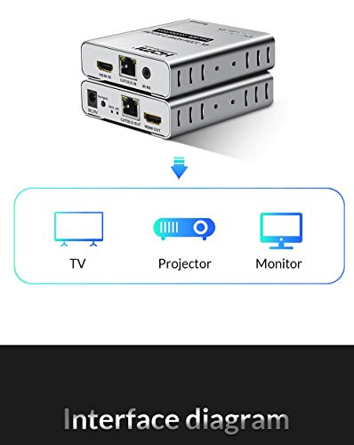 - 1. دعم من نقطة إلى نقطة، سلسلة استقبال متعددة - قم بتوصيل جهاز مصدر HDMI الخاص بك (الكمبيوتر الشخصي، وحدة التحكم في الألعاب، مشغل بلو راي، مشغل الوسائط) بجهاز الإرسال، استخدم هيكل ايثرنت الموجود في منزلك/مكتبك لتوصيل جهاز الإرسال بجهاز الاستقبال، ثم قم بتوصيل التلفزيون عالي الدقة الخاص بك من مكان بعيد بجهاز الاستقبال باستخدام كيبل HDMI؛ كابلات HDMI مطلوبة وتباع بشكل منفصل