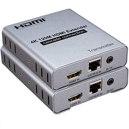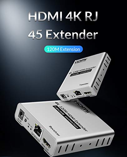 Tobo - توبو موسع HDMI 4K 400 قدم من نقطة الى نقطة، سلسلة استقبال متعددة، كيبل كات 5e/CAT6/7 مع جهاز تحكم عن بعد بالأشعة تحت الحمراء يدعم FHD 1080P حتى 396 قدم (120 متر) - (TD-437H-07)