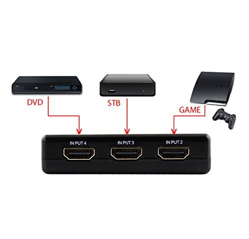 - لن يتم توصيل سلك الطاقة بالكامل بالوحدة، لا يهم، طالما يمكن قراءة الإشارة العادية. لأن واجهة HDMI الأنثوية هذه هي الواجهة القياسية. لا تقلق بشأن ذلك. 5 منافذ إدخال يمكن توصيلها بـ 5 مصادر فيديو / صوت مختلفة عالية الدقة في نفس الوقت، وبعد ذلك، فإن المخرج الوحيد سيرسل إشارة صوت/فيديو عالية الدقة إلى شاشة عالية الدقة. يدعم اتش دي سي بي الترا اتش دي 3 دي 1080 بي.
