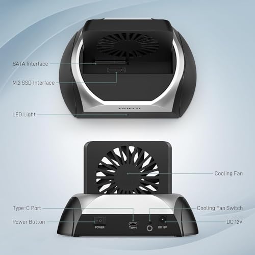 Tobo - قاعدة شحن للقرص الصلب، محطة توصيل M.2 NVME SSD مع مروحة تبريد، دعم لهارد ديسك ساتا 2.5 و3.5 بوصة وSSD ساتا M.2 NVME لتبديد الحرارة من توبو
