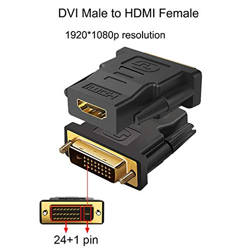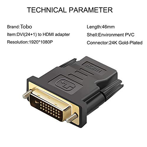 Tobo - توبو محول HDMI انثى الى DVI D 24 + 1 دبوس ذكر HDMI 2DVI محول كيبل محول للكمبيوتر وبلاي ستيشن 3 وجهاز العرض وتي في بوكس وشاشة LCD وتلفزيون HD TD-447H، أسود