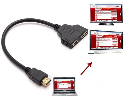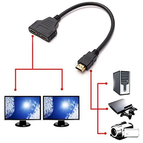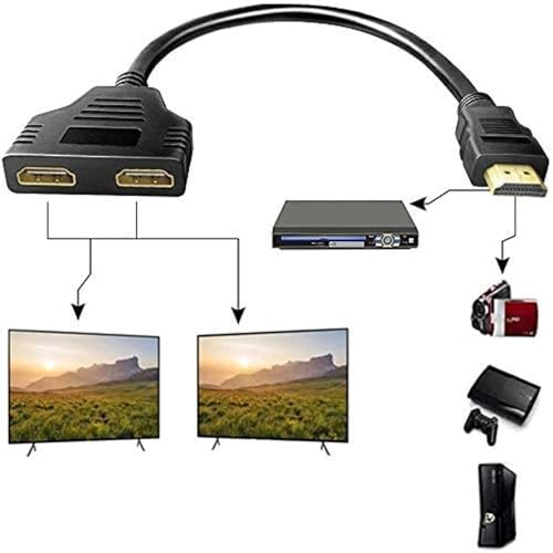 - كابل محول مقسم HDMI - كيبل محول HDMI 1 في 2 مخرج - HDMI ذكر إلى HDMI مزدوج أنثى من 1 إلى 2 اتجاهين لـ HDMI HD، LED، LCD، التلفزيون، يدعم اثنين من نفس التلفزيون في نفس الوقت.