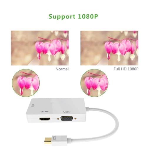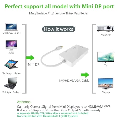 - كيبل محول منفذ عرض صغير 3 في 1 مطلي بالذهب إلى منفذ HDMI/DVI/VGA، ملاحظة: يدعم فقط مخرج شاشة واحد في كل مرة، يلزم وجود كابل HDMI/DVI/VGA منفصل، غير متضمن