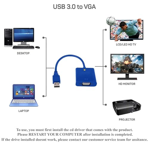 Tobo - محول USB 3.0 الى VGA انثى لتحويل من كارت الشاشة شاشات متعددة 1080 بيكسل توبو أسود
