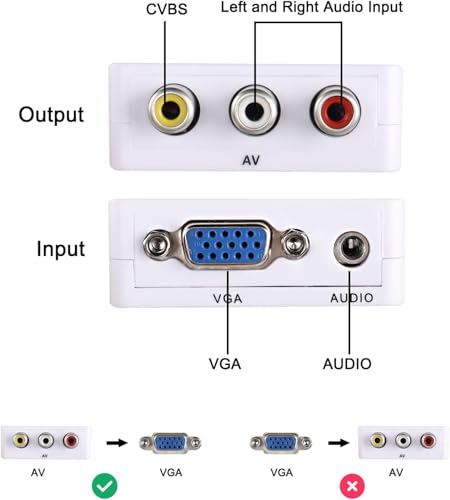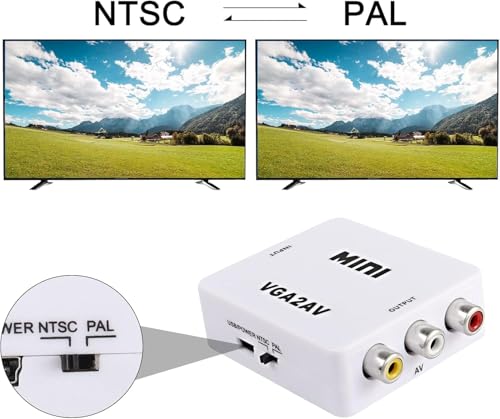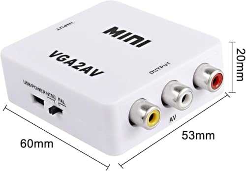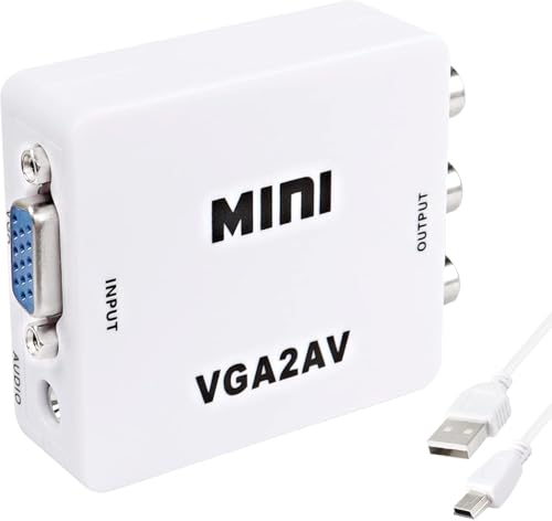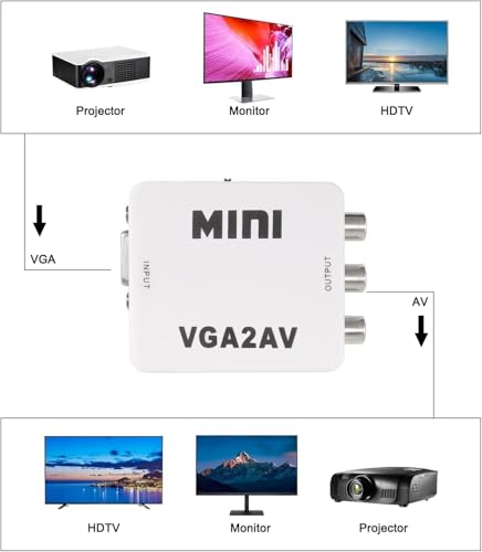 - محول محول في جي ايه إلى ار سي ايه (ايه في): - يدعم التلفزيون القديم مع واجهة ايه في للتوصيل بالكمبيوتر. من خلال محول VGA إلى AV لتحويل إشارة VGA إلى التلفزيون القديم. يدعم جهاز العرض بواجهة ايه في. توافق واسع. التوصيل والتشغيل.