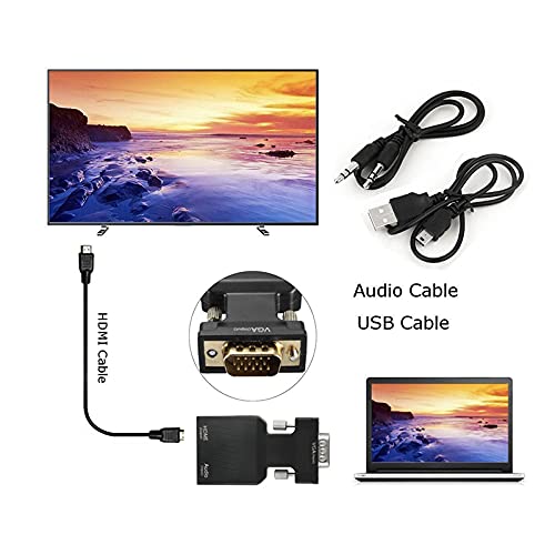 - محول/محول VGA-إلى HDMI محمول. قم بتوصيل الكمبيوتر / اللاب توب الأنيق القديم بسهولة مع مخرج VGA بالتلفزيون أو الشاشة أو بروجكتور مع مدخل HDMI لبث الفيديو أو تشغيل الألعاب أو مشاركة المحتوى.