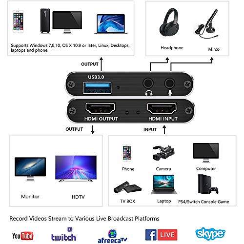 - ☑【مخرج HDMI】 لا يوجد تأخير عند تشغيل اللعبة مباشرة، منفذ HDMI الحلقي مفيد جدًا، منفذ نقل USB 3.0 عالي السرعة يجعل من السهل عليك نقل البث المباشر إلى تويتش، يوتيوب، او بي اس، بوتبلاير وفي ال سي، يعمل مع جهاز اتش دي سي بي 2.2 (متوافق أيضًا مع HDCP2.0، 1.4، 1.3).