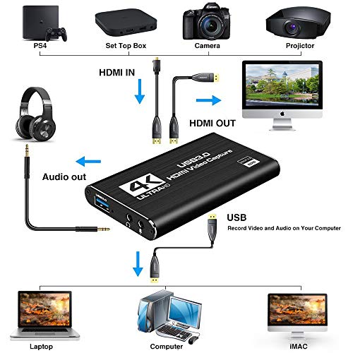 - ☑【التقاط ألعاب HDMI بدقة 4K】تدعم بطاقة الالتقاط هذه مرور 4K @60 إطار في الثانية 4:4:4 لإدخال وإخراج HDMI 2.0. تم إنشاء جهاز التقاط HD مع وضع التصميم الراقي في الاعتبار كحافظة سوداء من الألومنيوم المصقول ولا تتطلب أي مصدر طاقة خارجي.